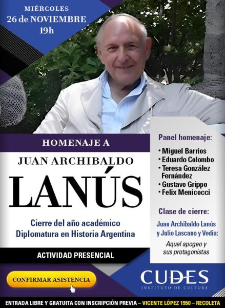 CIERRE DEL AÑO DE LA DIPLOMATURA EN HISTORIA ARGENTINA Y “HOMENAJE A JUAN ARCHIBALDO LANÚS”