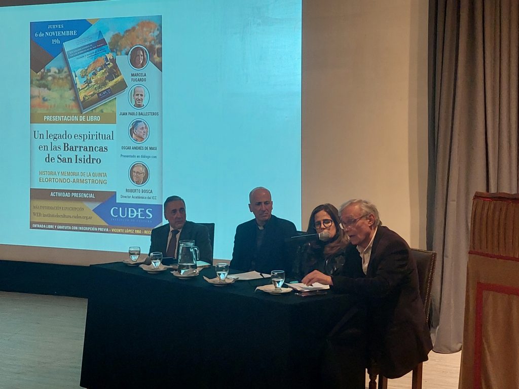 El jueves 6 de noviembre de 2025, a las 19, se llevó a cabo la presentación de Un legado espiritual en las barrancas de San Isidro. Historia y memoria de la quinta Elortondo-Armstrong, el nuevo libro de Marcela Fugardo, Juan Pablo Ballesteros y Oscar Andrés De Masi.